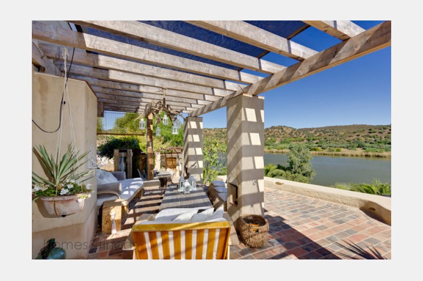 Impresionante villa/casa de río en venta, con aprox. 160m² construidos y aprox. 1.200m² de parcela, a orillas del río Guadiana, con muelle de embarcación. La casa está situada en el pequeño pueblo El Romerano con fácil acceso en barco a los pueblos en España y Portugal.