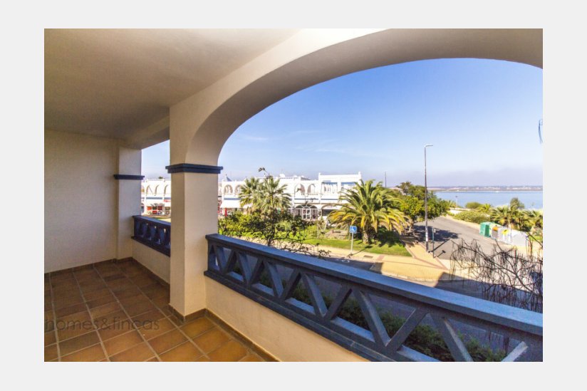 Piso en venta en Ayamonte Piso Marina Punto del Moral / Ayamonte / Prov. Huelva. Apartamento en el 2º piso con ascensor. Superficie de construcción aprox. 80 m2. Completamente amueblado. 2 dormitorios con armarios empotrados. 2 baños. Salón / comedor. Cocina completa. Lavadero. Terraza grande de aprox. 16 m2. Plaza aparcamiento reservado en el sótano. Jardín y piscina comunitario. Urbanización cerrada con conserje.